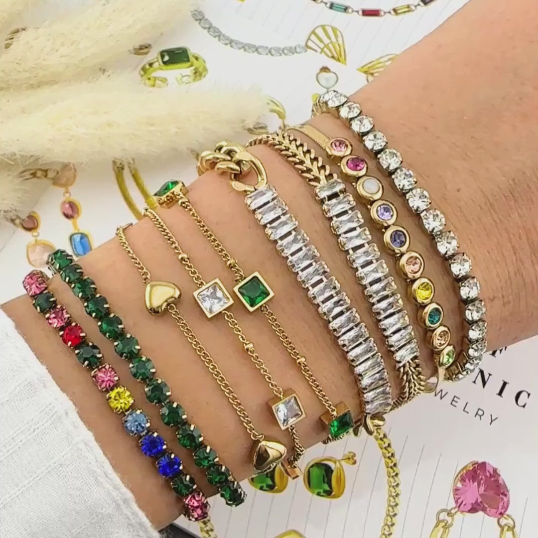 Ett tidlöst och romantiskt armband som symboliserar kärlek, värme och elegans. Detta vackra “Hjärtan” armband i 18K guldpläterat rostfritt stål har en fin kedja dekorerad med små polerade hjärtan – perfekt som en subtil men lyxig detalj till din outfit.